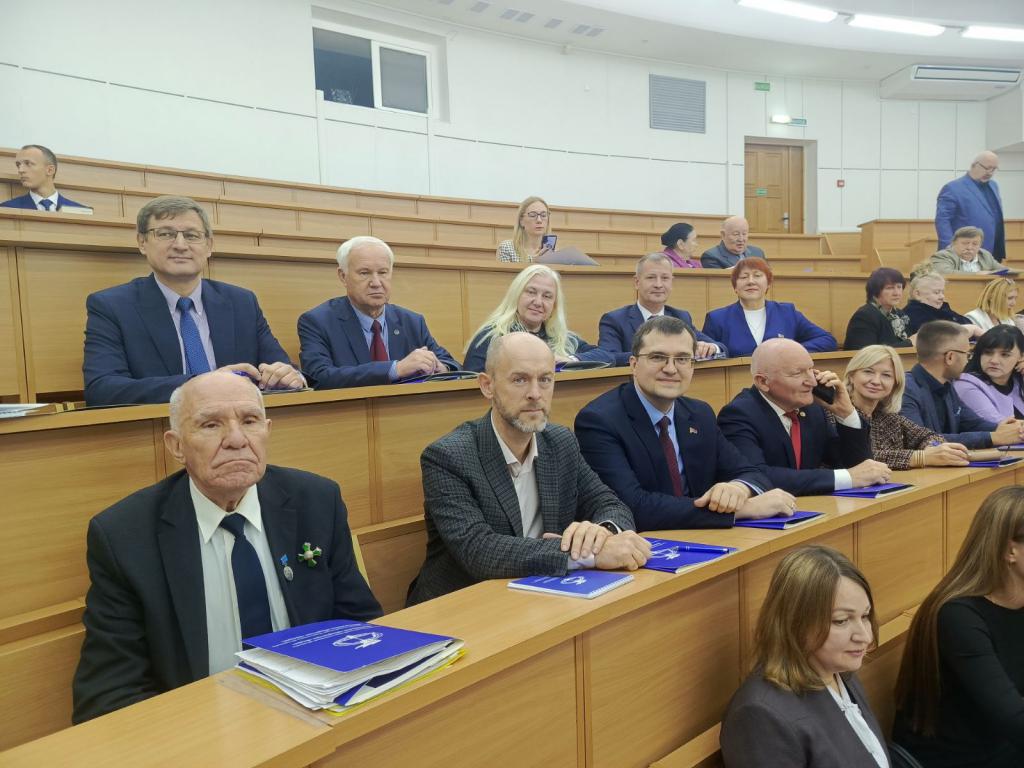 30 октября 2025 г. в Минске состоялся V cъезд Республиканского государственно-общественного объединения «Белорусское общество «Знание»», который стал важным событием в общественной жизни государства. В мероприятии приняли участие делегаты, работающие в нашем университете и представлявшие областную и городскую организации данного общества, среди них была заведующий кафедрой истории Беларуси, председатель первичной организации УО «ГГУ им. Ф. Скорины» РГОО «Белорусское общество «Знание»» О. Г. Ященко. С отчетом об итогах работы общества за 2021 – 2025 гг. выступил председатель правления В. Ф. Гигин, обративший внимание на достижения общества и перспективы его дальнейшего развития. На съезде были избраны выборные органы РГОО, а затем состоялось первое заседание вновь избранного правления, на котором единогласно был определен новый председатель правления общества – Алексей Авдонин.