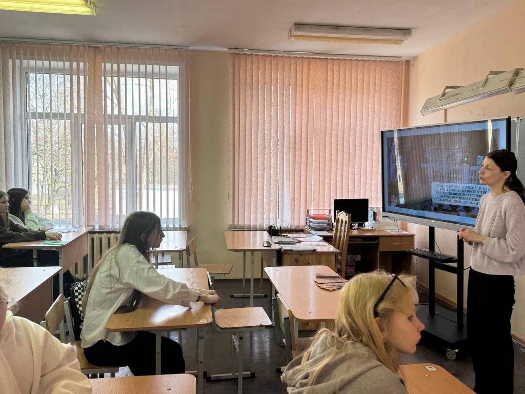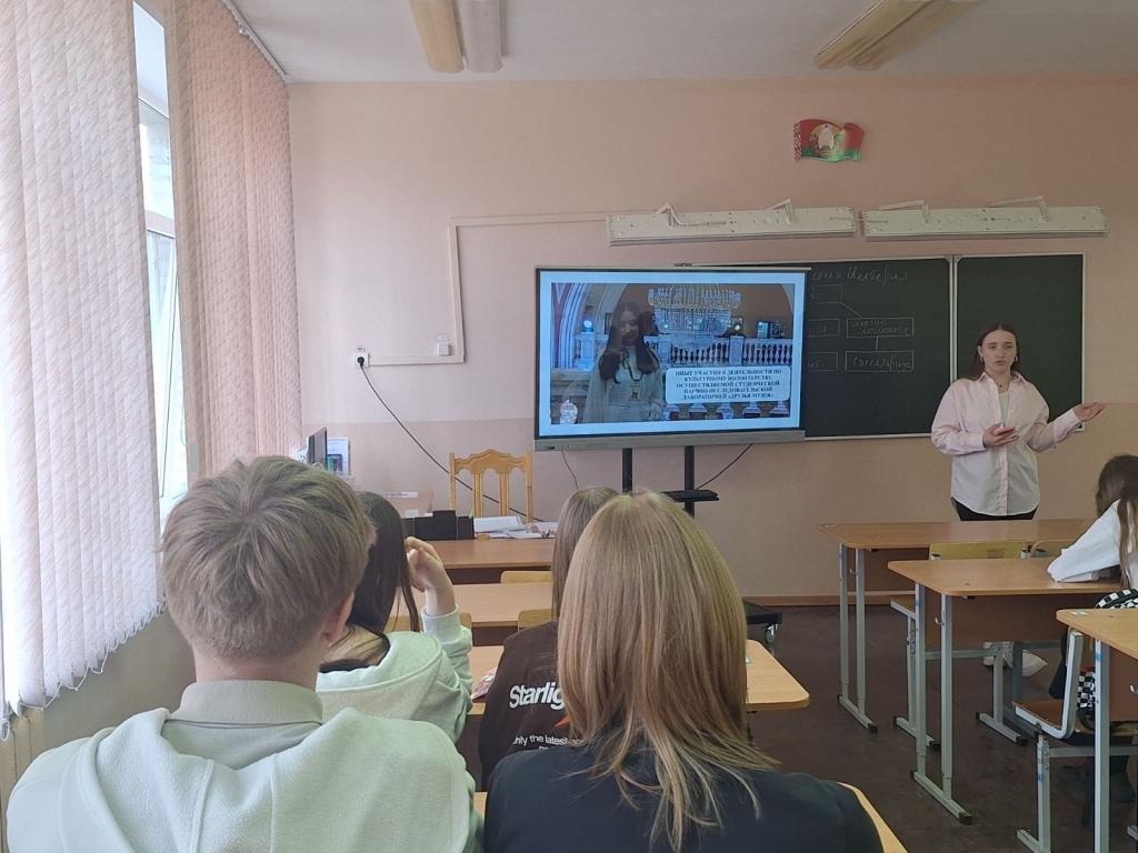25 марта 2026 г. в Гимназии № 36 г. Гомеля им. И. Мележа состоялось профориентационное мероприятие для учащихся 9-11 классов, которое провели старший преподаватель Наталья Викторовна Корникова и члены СНИЛ "Друзья музея". В рамках профориентационной встречи Н.В. Корникова рассказала будущим абитуриентам о специальностях факультета, о возможностях поступления и вступительных испытаниях. Член СНИЛ "Друзья музея" Римашевская Е. рассказала старшеклассникам о проектах студенческой научно-исследовательской лаборатории, связанных с культурным волонтерством и своем личном опыте участия в них.